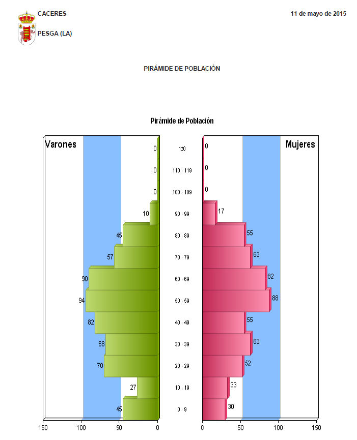 Estadísticas PIRÁMIDE DE POBLACIÓN Estadísticas de Población de La Pesga, actualizadas a fecha 11 de mayo de 2015 Documentos PIRÁMIDE DE POBLACIÓN (pdf 345 kB)