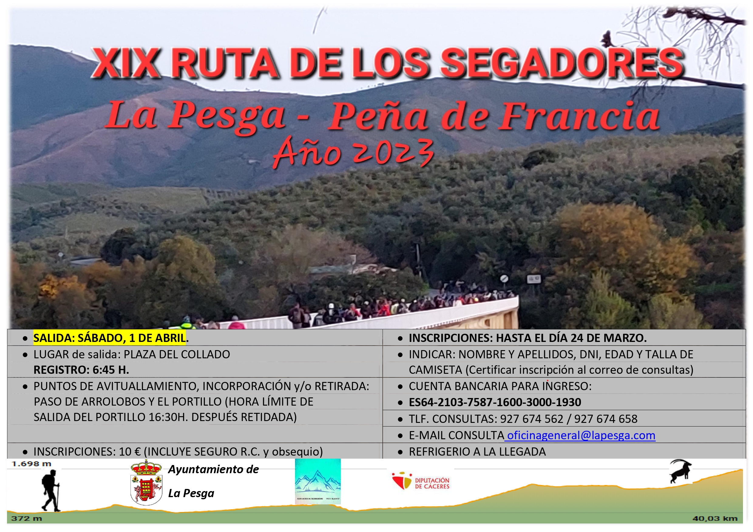 Se informa a tod@s l@s interesad@s que ya pueden realizar la inscripción para la XIX Ruta de Los Segadores que se celebrará el día 01 de abril de 2023.